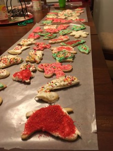 I made cookies with my girls the other day. Not rum balls, obviously. Sugar cookies – the kind you roll out and press with cookie-cutters. Of course, we had to lick the spoons and bowl. If you’re not covered in gooey sugar at the end of baking, then you’re not doing it right. Dough ended up everywhere in the kitchen. But that’s okay. They are only young once.